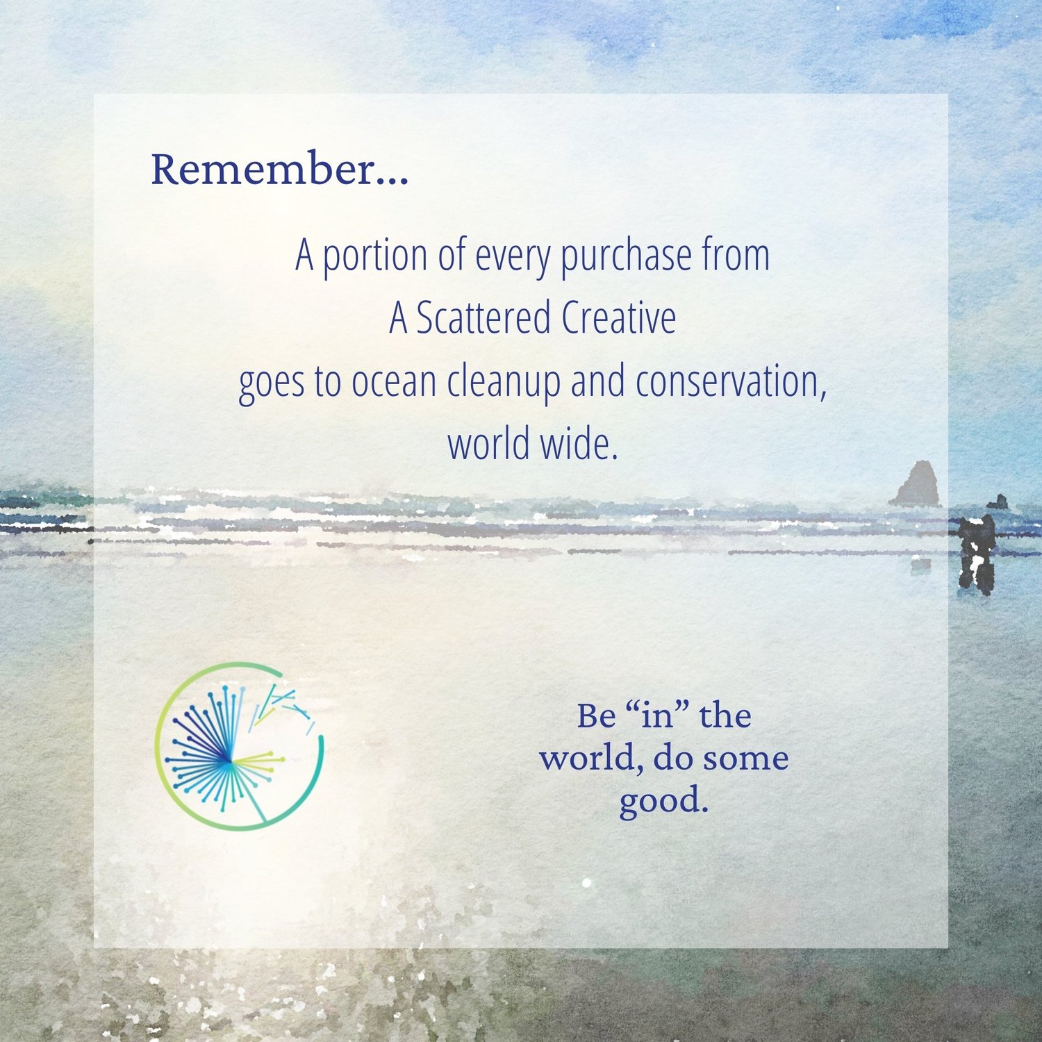 Feel good about your purchase, 3% of my entire business revenue (from all shops and all direct sales) is donated Annually to Oceana, an organization devoted to cleaning up and saving our oceans. My father was a sea captain and I understand intimately how important our oceans are to the survival of our entire planet and all of us on it.