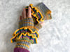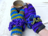 Knitting pattern for easy ruffled fingerless gloves. Fun and funky hand warmers with soft ruffles that won’t need blocking every time they are washed. "Raggedy Ruffles" is a Digital Download in PDF format. Written for two gauges, they can be knit in worsted weight (8 ply) yarn or DK (4 ply) weight yarn. Designed to use all those fabulous little leftovers; pick four or five colors that play well together. Hand-dyed and printed color yarns add to the raggedy ruffled look that will be fun to wear, or in a solid color for a more sophisticated look! Your choice of colors can give you a look from girly to steampunk. You will have two wrist ruffles just below the thumb. No cuff ruffle makes it easy to tuck them under the cuff of your coat.